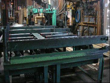 エアースキット。ローラーの上に落ちた材をテーブルバンドソーに送ります。