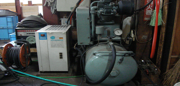 このスプレーで帯鋸に灯油をふきかけて木のやにが付着するのを防ぎます。